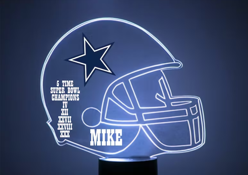 This stunning Dallas Cowboys Led Football Sports Fan Lamp is one of the most eye-catching Dallas Cowboy presents available. There are four different styles for you to pick the right gift that perfectly suits the recipient. He may bring a sense of “Cowboys” ambiance to any space in the home with this fantastic light.