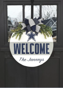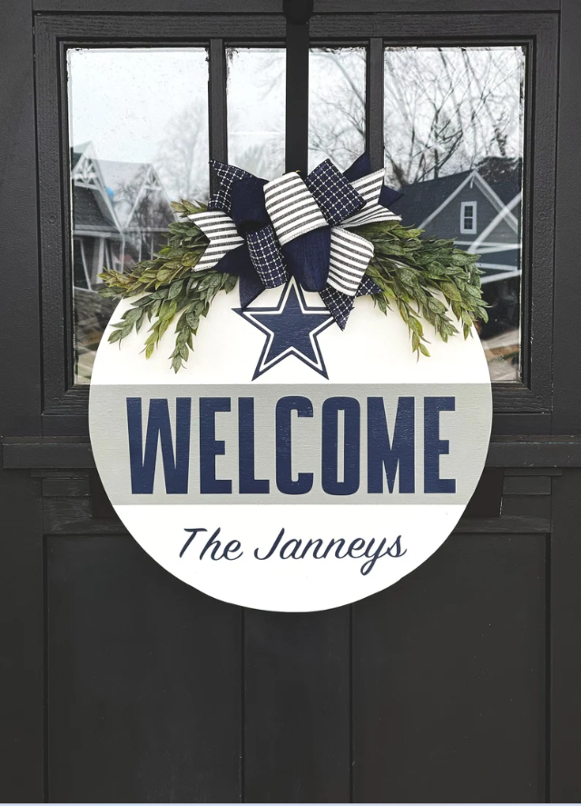 This personalized Cowboys Welcome Sign is the perfect Dallas Cowboys gift for any die-hard football fanatic. The recipient will proudly show off his support for America’s team right on his front door. The best part is that you can personalize his name on the bottom of this sign to make it more special.